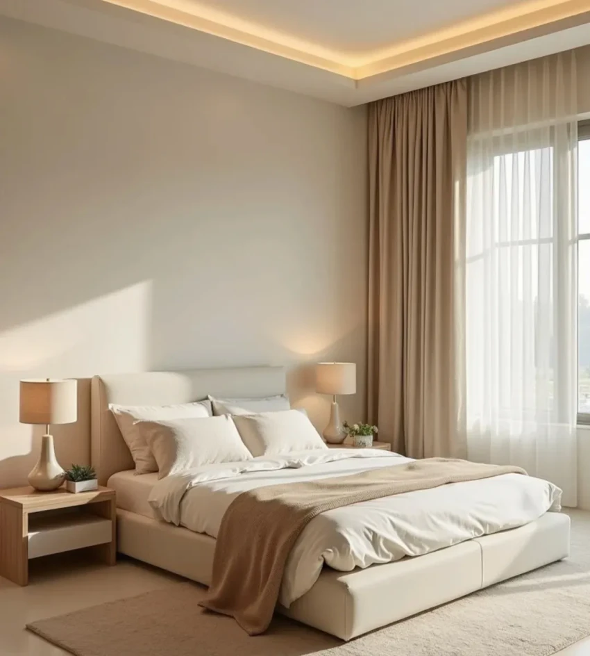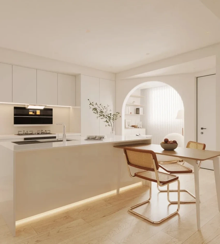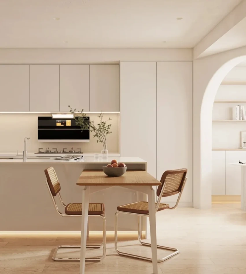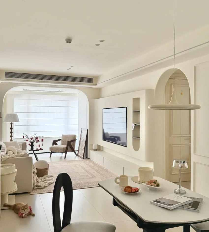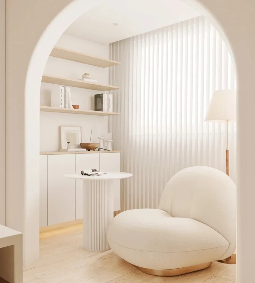 奶油風(Cream Style)源於歐洲家居美學,強調 溫柔、輕盈、浪漫氛圍。以米白、奶油色、淺米灰為基調,營造出柔和的光影效果。奶油風因其溫馨治癒、細膩質感而深受年輕女性與小家庭的喜愛。 色彩柔和:以奶油色、米白、淺駝色為主,搭配淺木色或莫蘭迪色系,營造溫暖空間。 材質細膩:多用乳膠漆、布藝、木材、法式線條,呈現優雅質感。 氛圍浪漫:柔光燈飾、窗紗、圓弧造型設計,讓空間充滿輕盈感。 家具設計:圓潤線條、低飽和度色調,結合舒適坐感與美學細節。 軟裝搭配:藤編椅、奶油地毯、香氛蠟燭、小擺件點綴,增添治癒氛圍。